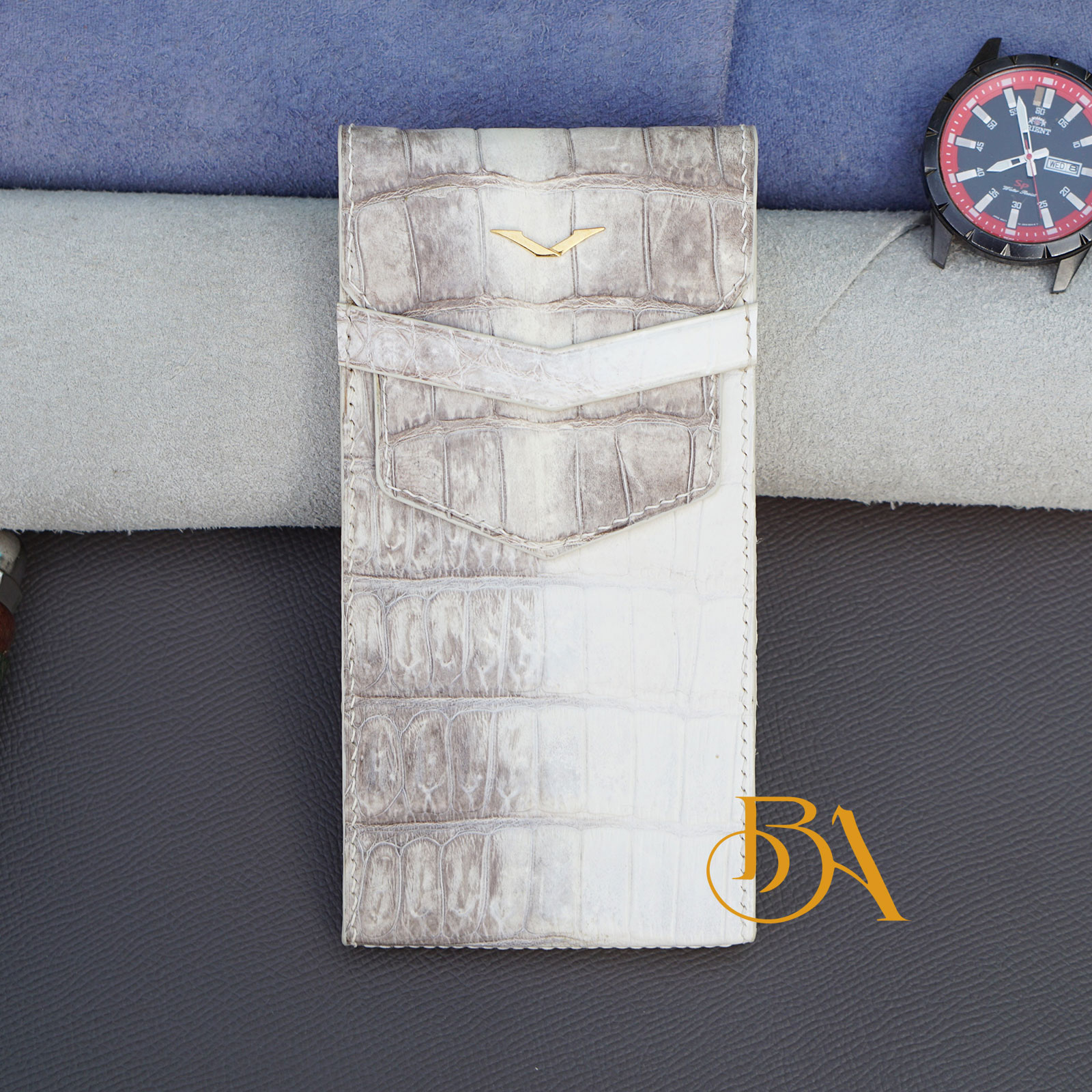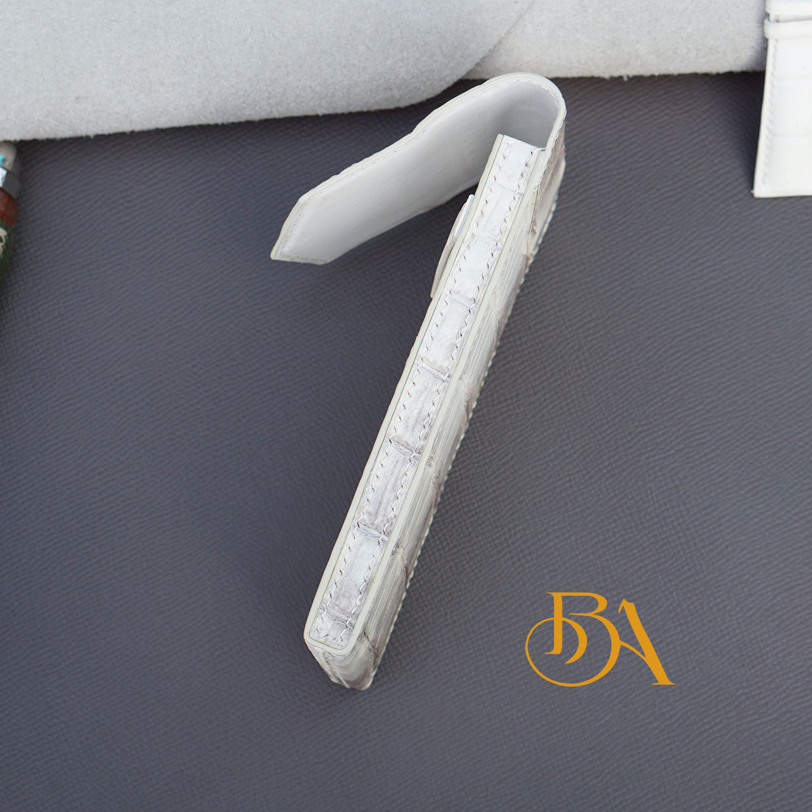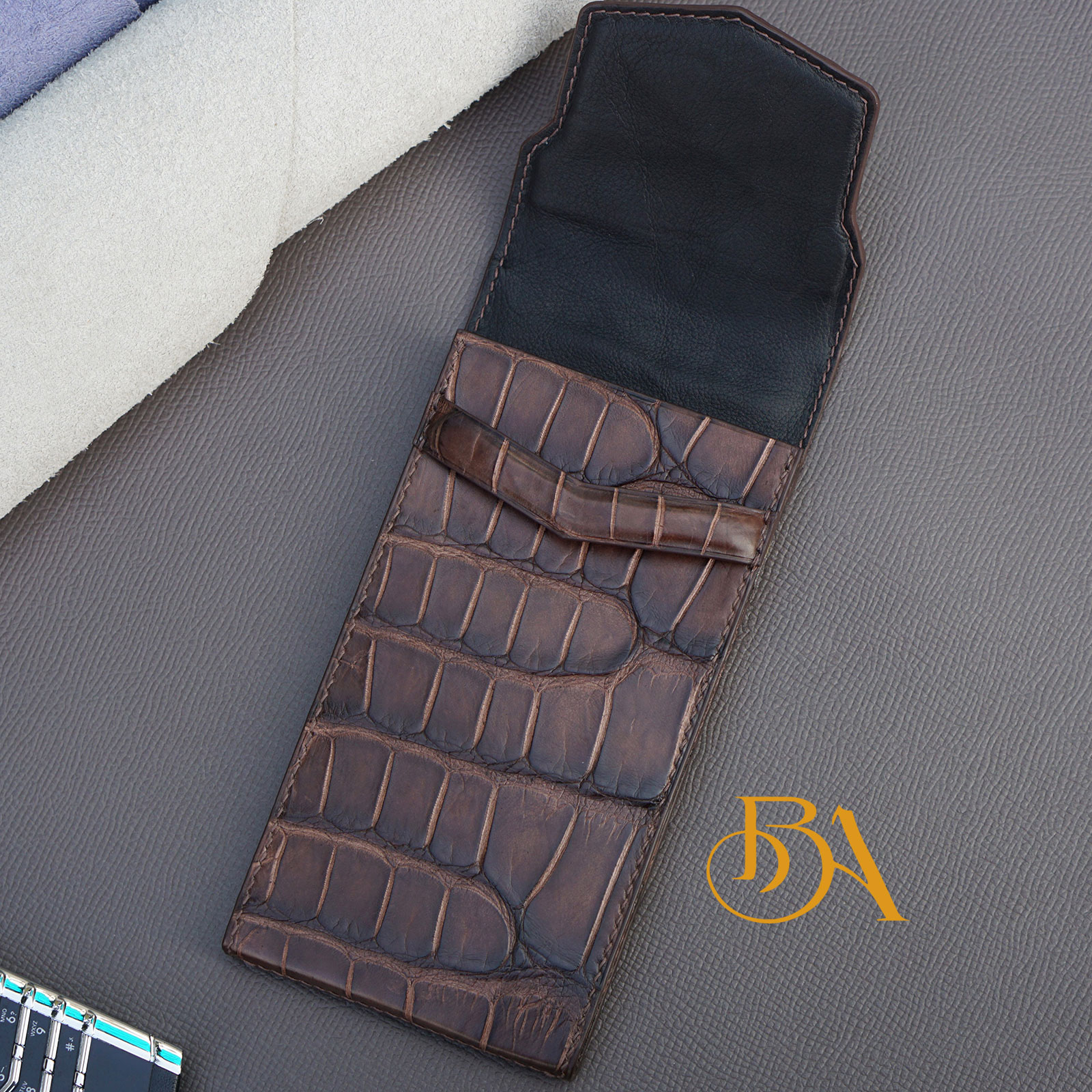 ★ Nguyên liệu: Bên ngoài của bao da METAVERTU được làm từ da cá sấu Alligator Thái Lan. Bên trong làm từ da bê Swift nhập Pháp, loại da này mềm mịn rất phù hợp làm lót bên trong, giúp bảo vệ điện thoại của bạn