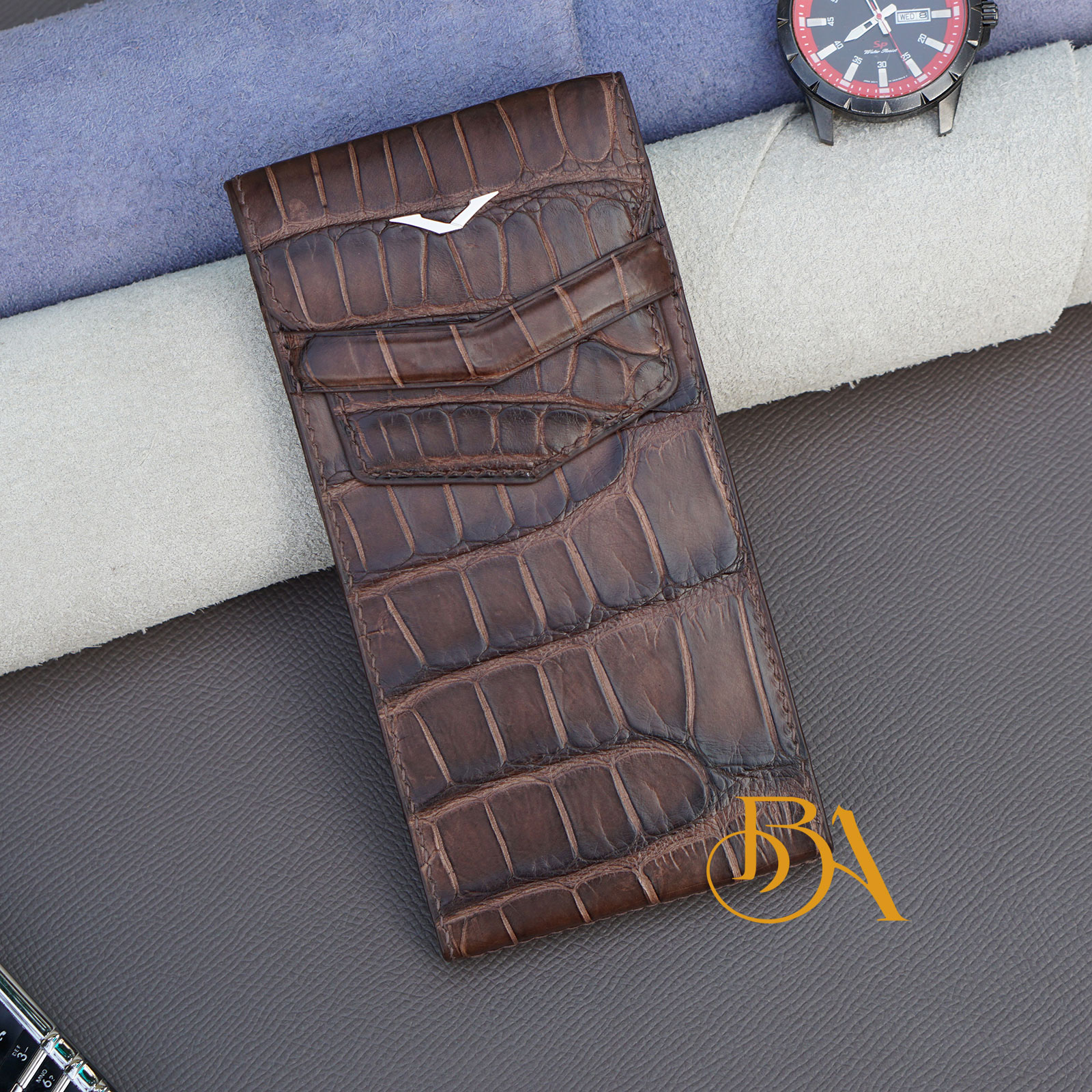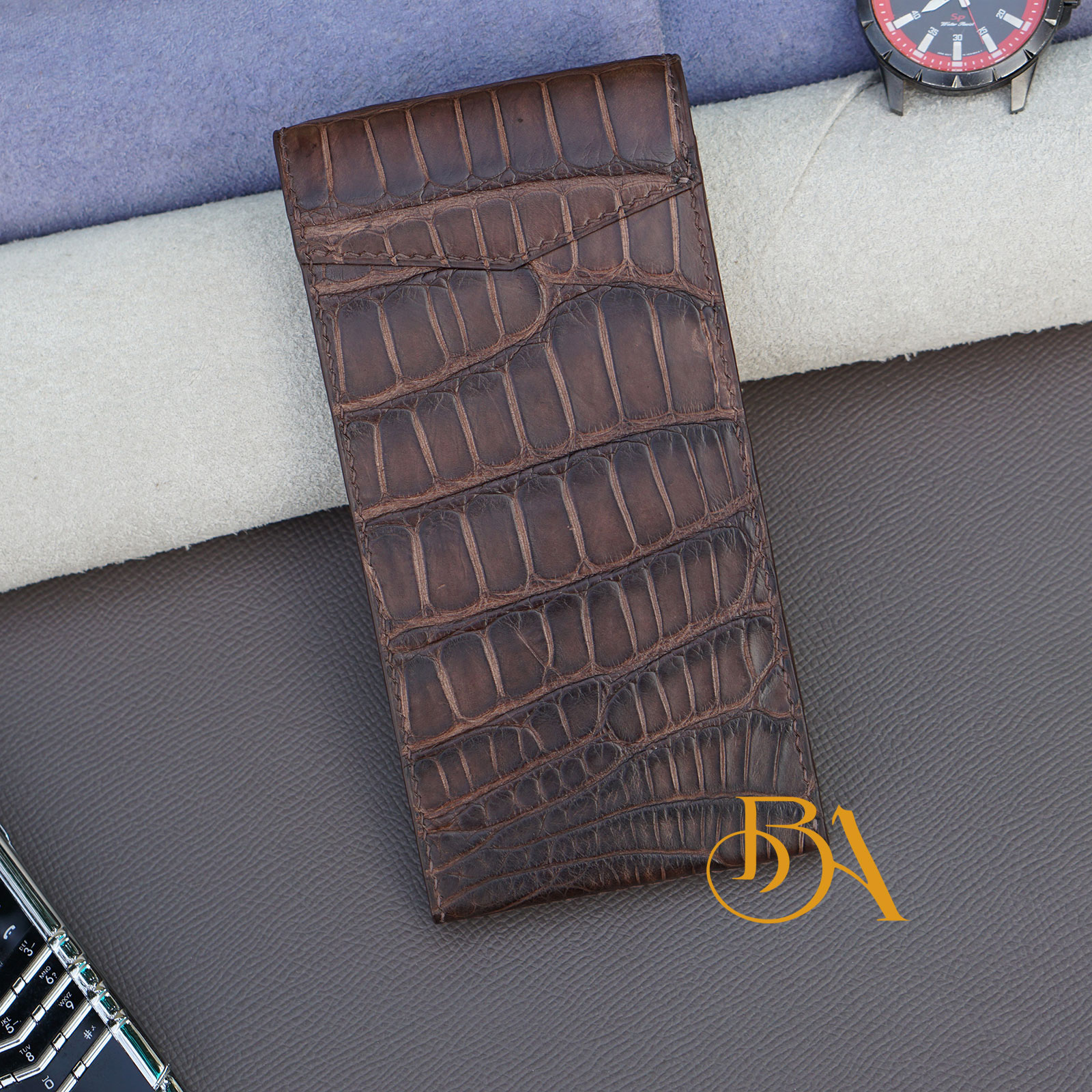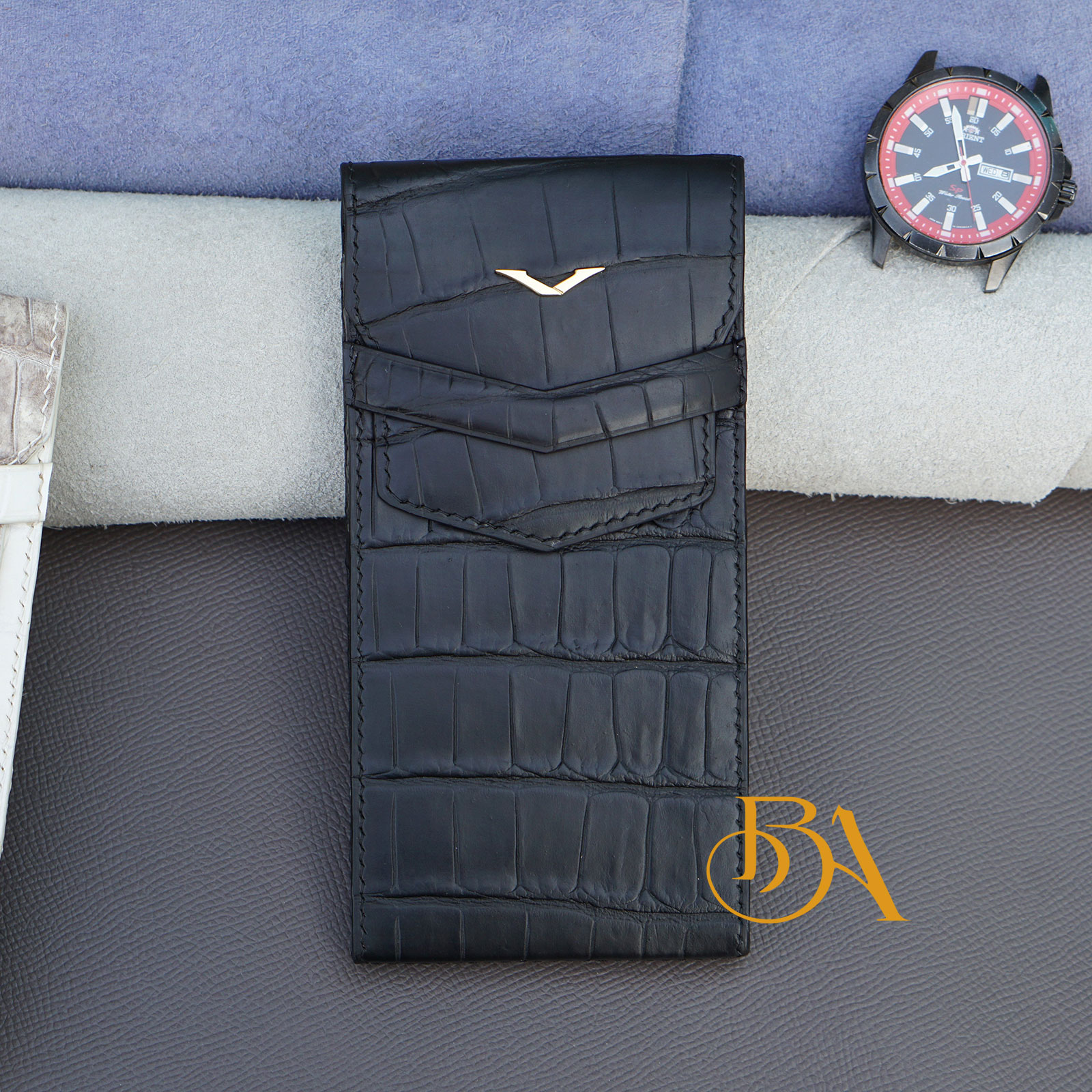 ★ Nguyên liệu: Bên ngoài của bao da METAVERTU được làm từ da cá sấu Alligator Thái Lan. Bên trong làm từ da bê Swift nhập Pháp, loại da này mềm mịn rất phù hợp làm lót bên trong, giúp bảo vệ điện thoại của bạn
