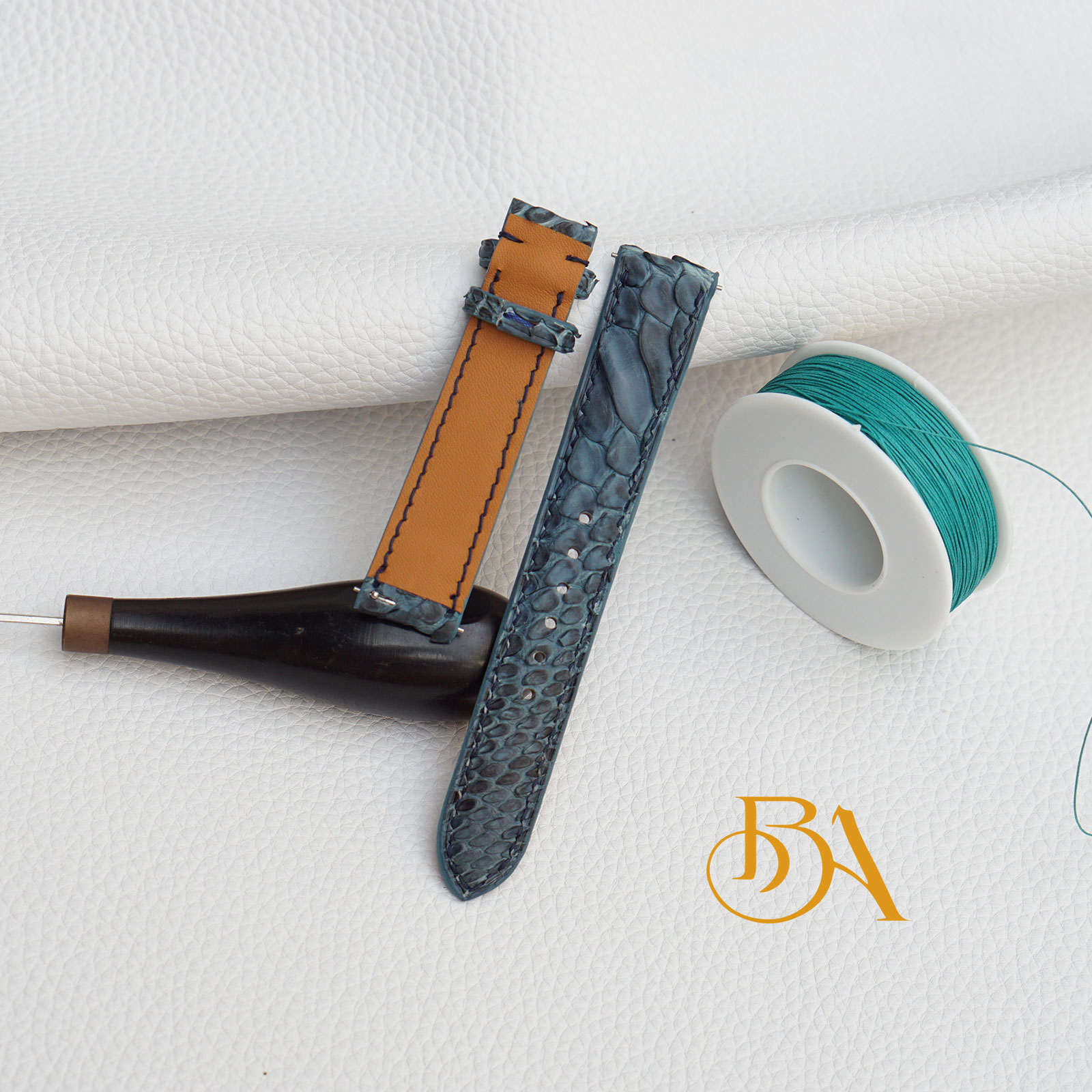 – Mặt trên của dây đồng hồ được làm da trăn Nam Mỹ, da trăn là một loại da rất mềm, vân bề mặt đặc trưng, tạo nên vẻ đẹp không lẫn với bất kỳ loại da nào khác. Mặt dưới da bê Zermatt nhập khẩu Pháp, loại da bê này rất mềm mại, mịn màng và có khả năng chống thấm mồ hôi tương đối tốt. Cổ tay của quý khách thường xuyên ra mồ hôi có thể yên tâm là dây đeo vẫn rất bền bỉ theo thời gian