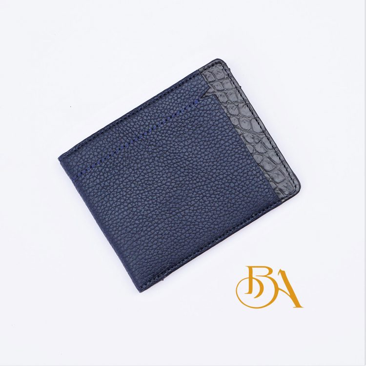Ví Da Bò Vân Hạt Màu Xanh Navy. Ví Da Bò Nam Dáng Đứng M006
