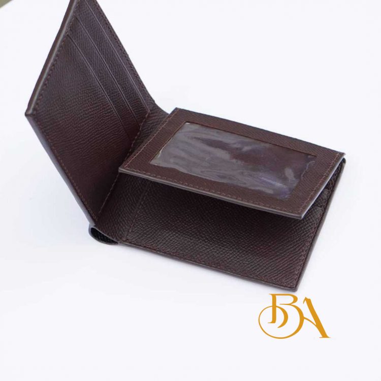 Ví nam da Epsom nhập khẩu, ví da bê Handmade cao cấp màu nâu đậm CWL120