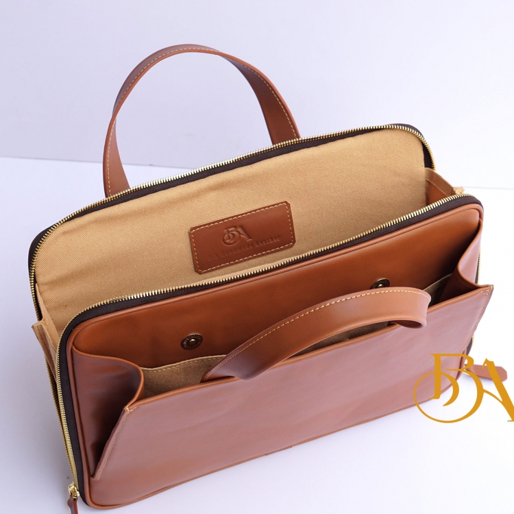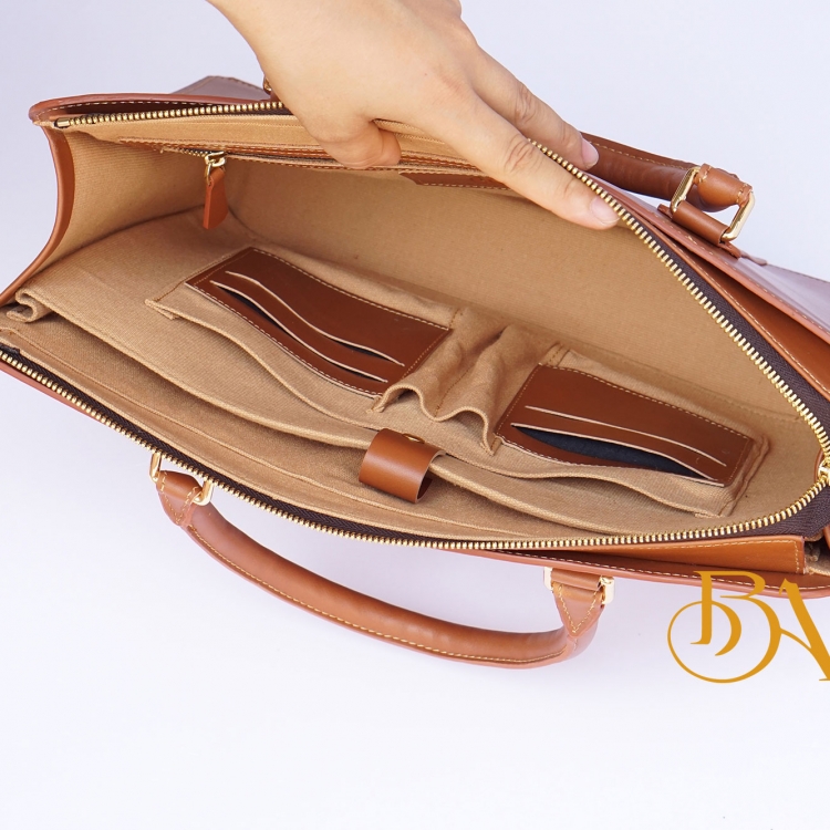 Túi xách công sở da bò Nappa nâu Gold, Cặp xách mỏng gọn da bò CTB014