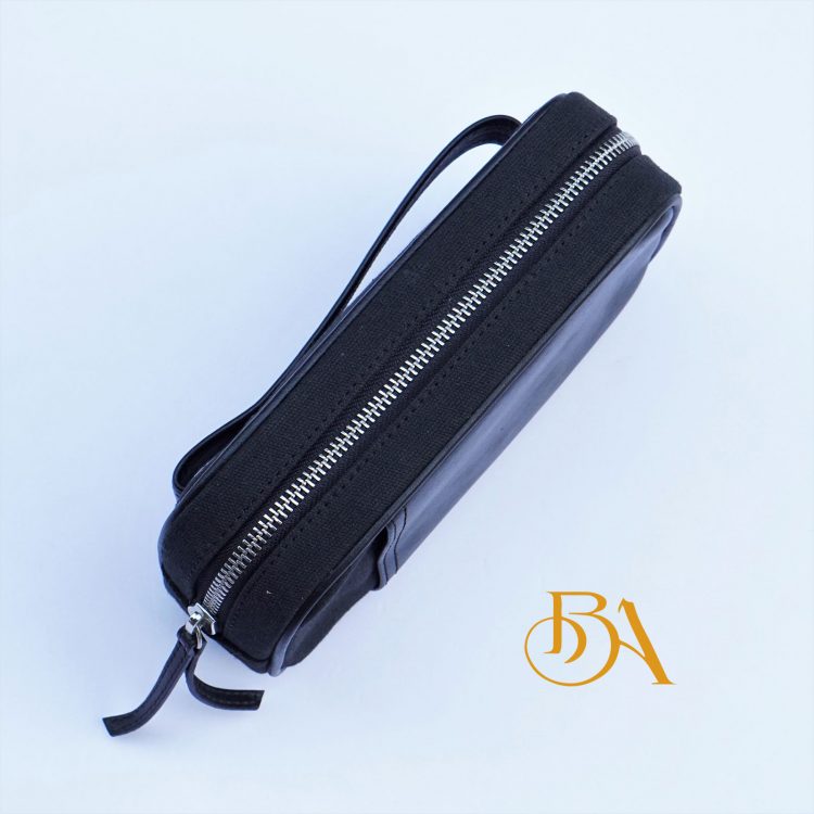 Clutch Da Nam Phối Vải Canvas. Clutch Da Thời Trang Màu Đen M026