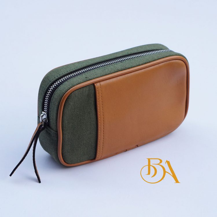 Clutch Da Nam Phối Vải Canvas. Clutch Da Thời Trang Màu Xanh Rêu M015