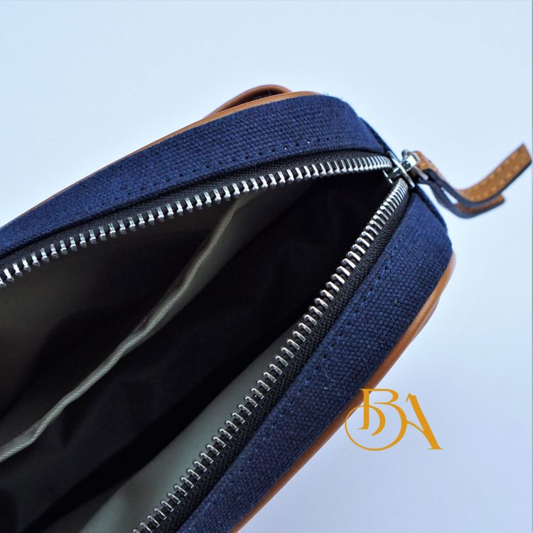 Clutch Da Nam Phối Vải Canvas. Clutch Da Thời Trang Màu Xanh Navy M017