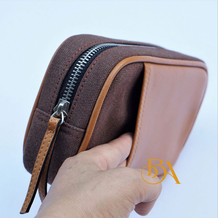 Clutch Da Nam Phối Vải Canvas. Clutch Da Thời Trang Màu Nâu Vàng M016