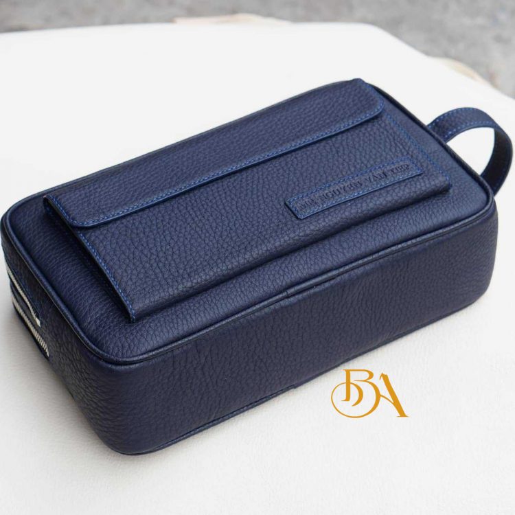 Clutch cầm tay da Togo nhập khẩu, Clutch chơi golf da bò Handmade xanh navy CTB004