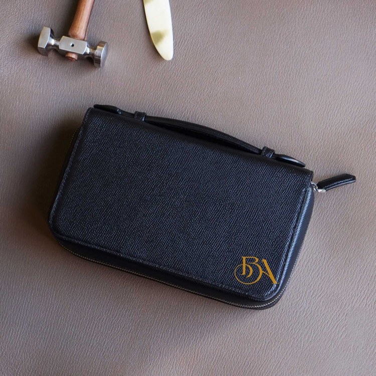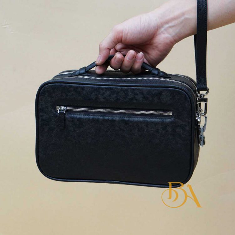 Clutch da Epsom Handmade màu đen, Clutch cầm tay da bê cao cấp CTB011