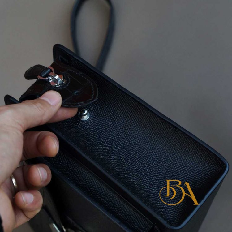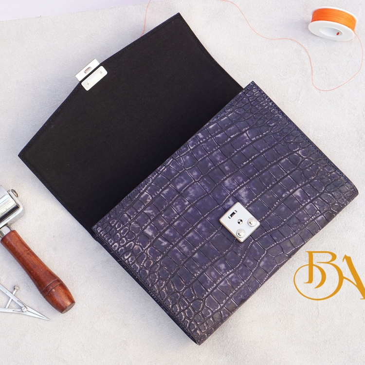 Clutch da Epsom Handmade có khóa, Clutch cầm tay da bê kết hợp cá sấu cao cấp CTB007