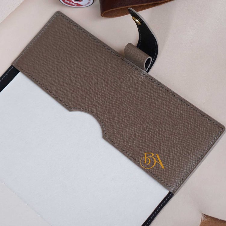 Bìa sổ da bê Epsom Handmade màu xám BC101