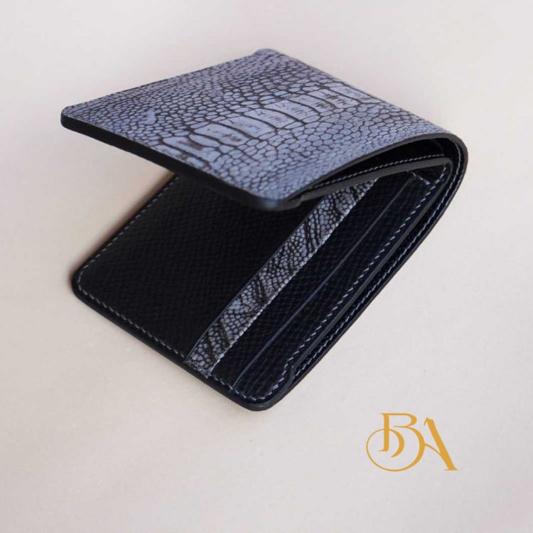 Ví da đà điểu Handmade màu xanh đen, ví nam da đà điểu Nam Phi OWL102