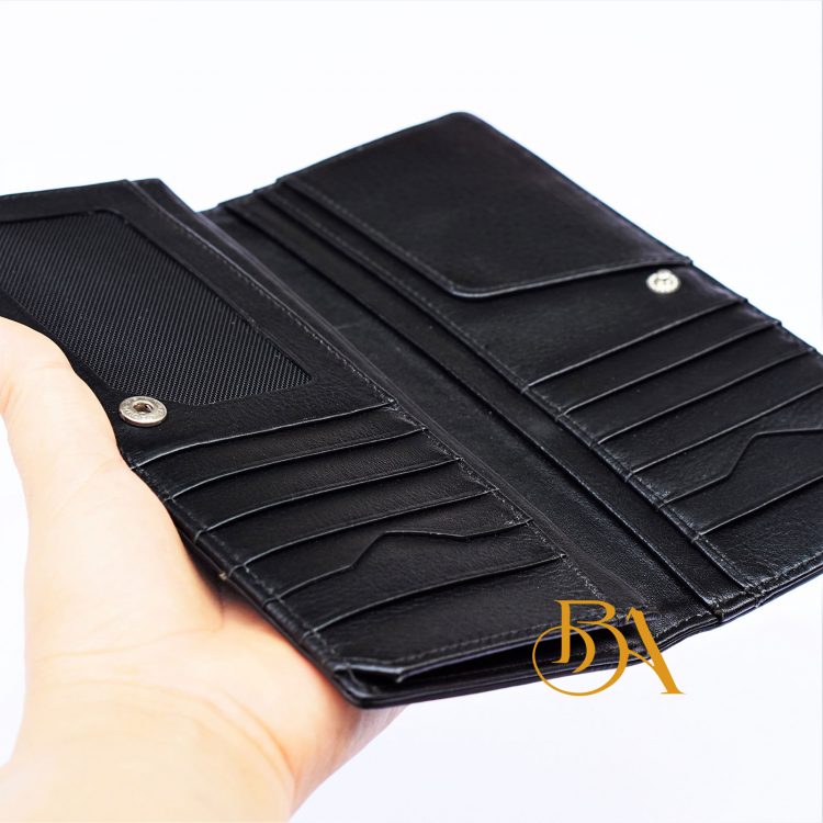 Ví Da Bò Cầm Tay Màu Đen. Ví Dài Da Thật M067