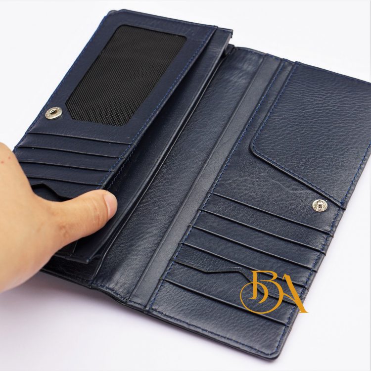 Ví Da Bò Cầm Tay Màu Xanh Navy. Ví Dài Da Thật M066
