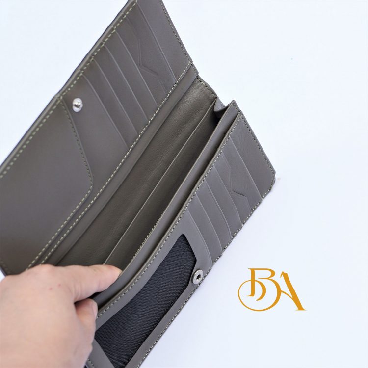 Ví Da Bò Cầm Tay Màu Xanh Oliu. Ví Dài Da Thật M070