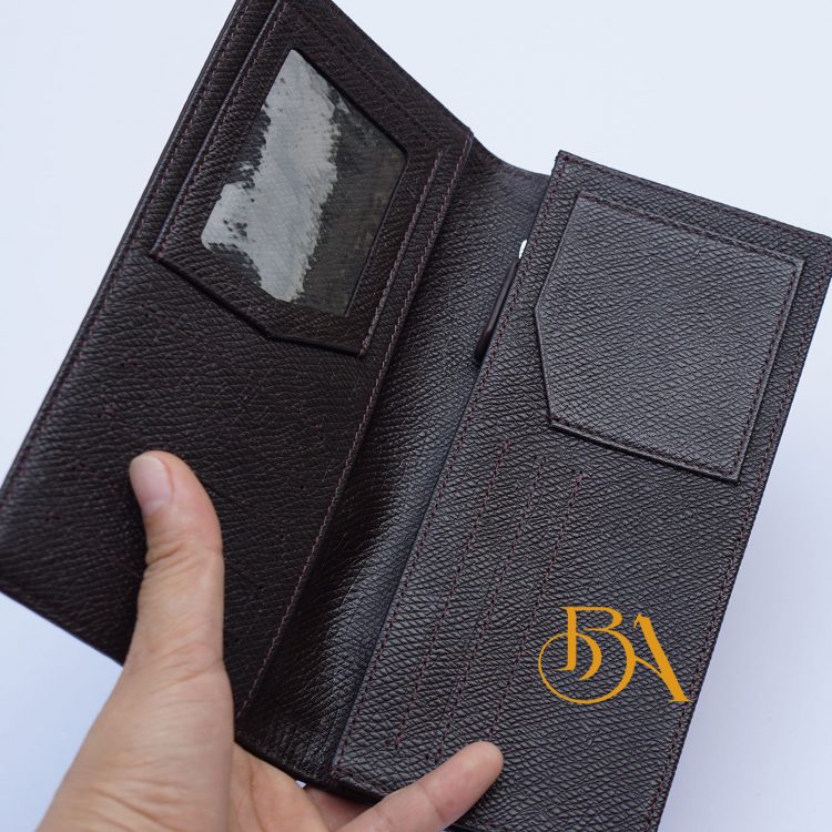 Ví Da Bò Epsom Màu Nâu. Ví Nam Da Thật Dáng Dài M039