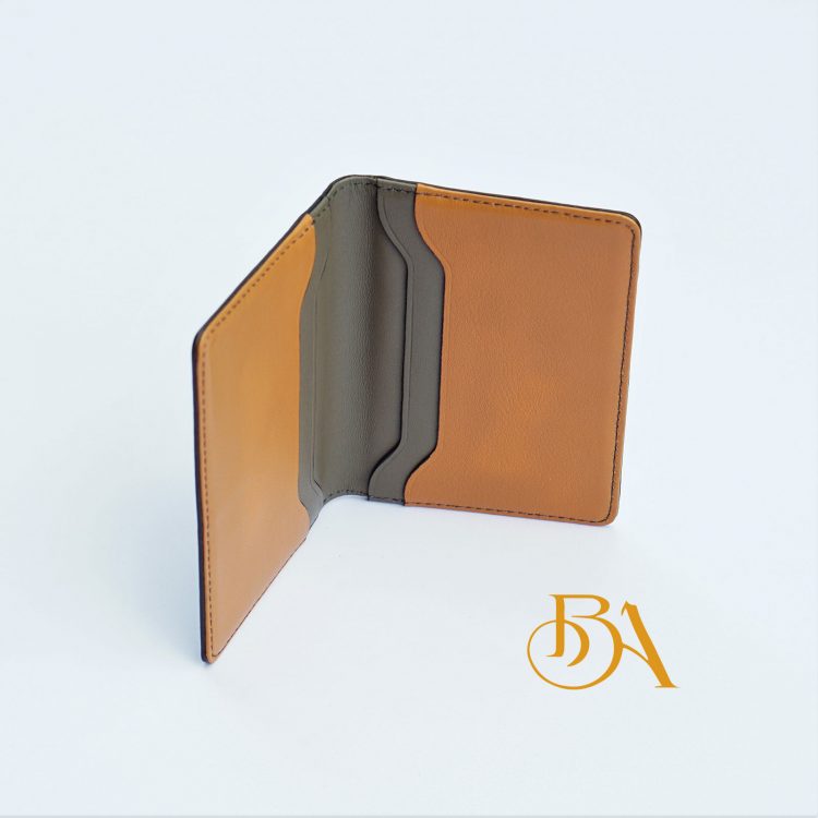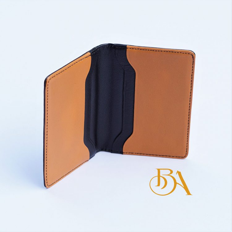 Ví đựng card da bò Togo Handmade màu đen phối nâu Gold CWL126