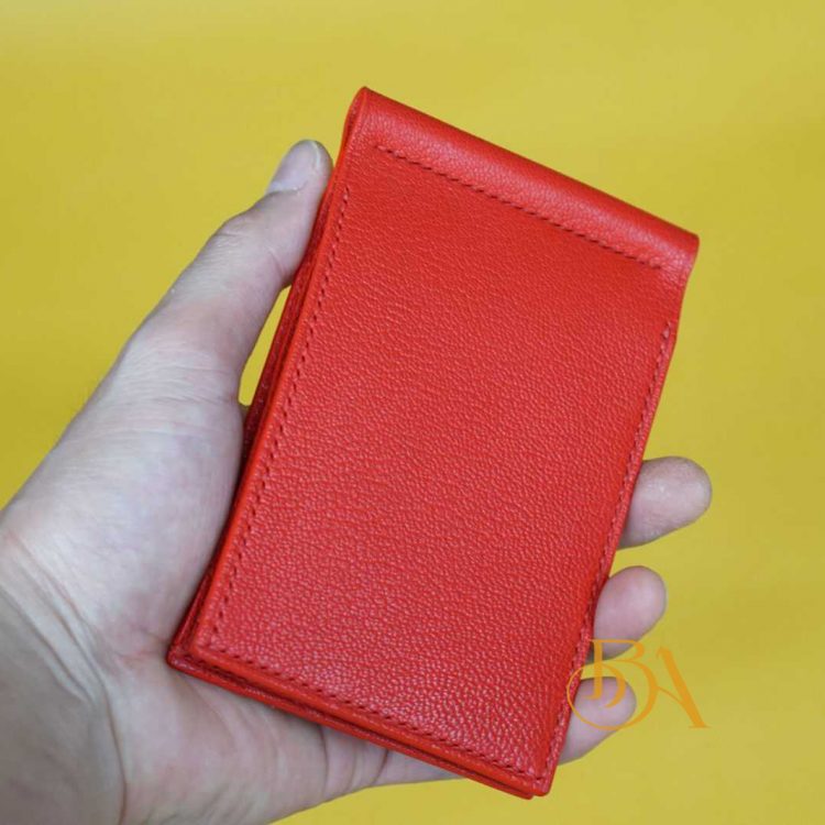 Ví kẹp tiền da dê Handmade cao cấp, ví Money Clip da dê màu đỏ GWL103